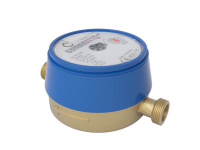 Medidor de agua fría de lectura directa, de chorro simple, caudal nominal 1,5 m³/h, diámetro 1/2", temperatura máxima 30°C, presión máxima 16 bar, apto para aguas muy duras, con tapa, racores de conexión y precinto. | ||