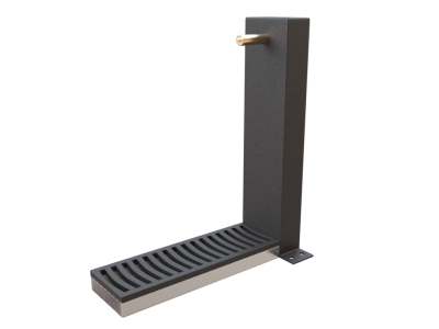 Fuente de 120 cm de altura, con cuerpo de fundición de fierro con protección antioxidante y pintura de color negro, caño y pulsador de fundición de latón y rejilla de fundición de fierro pintada en color negro, colocación con marco de acero galvanizado y pernos de anclaje. | ||