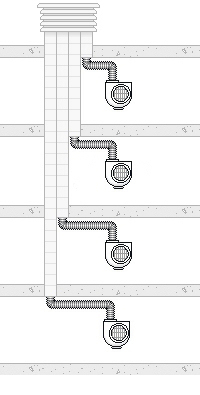 Extractor de cocina, de dimensiones 218x127x304 mm, velocidad 2250 r.p.m., caudal de descarga libre 250 m³/h, con tramo de conexión de tubo flexible de aluminio a ducto de extracción para salida de humos; instalación en el interior de la campana. Incluso elementos de fijación.